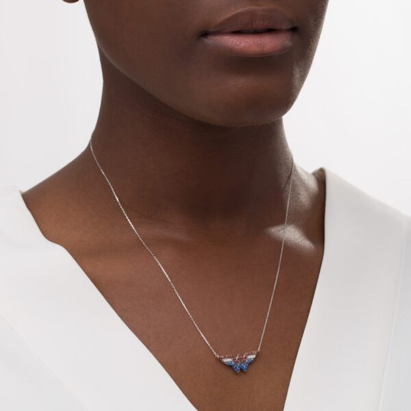 Garnet, Blue Sapphire and 1/20 Diamond CT. T.W. Symbol Necklace in Sterling Silver