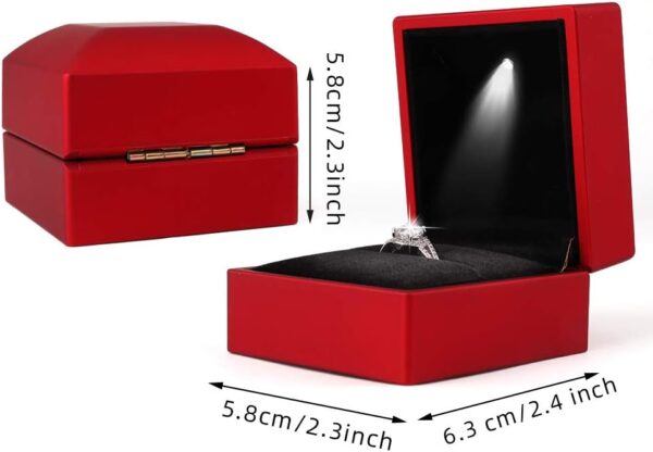 - LED light: There is an LED light in the ring box. When you open the ring box, the LED will automatically light up. The soft light shines on your jewelry, making your jewelry more beautiful and shining, and perfectly displaying your jewelry.